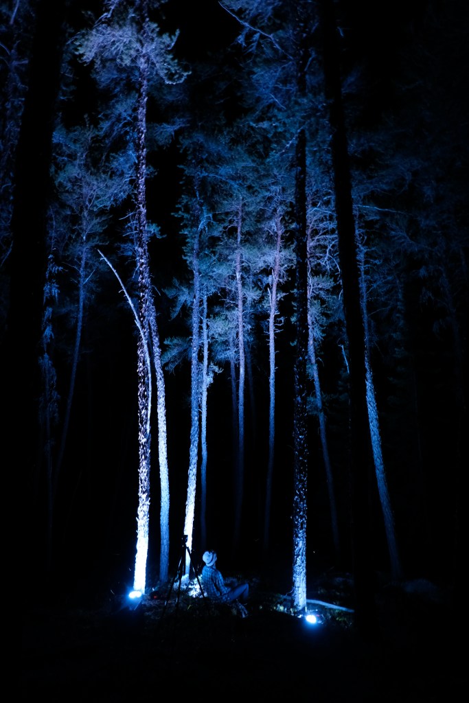 Deze installatie maakt gebruik van versnellingsmeters en ultrasone afstandssensoren om de bewegingen van wuivende bomen en menselijke/niet-menselijke bezoekers in het bos in kaart te brengen. Deze gegevens worden omgezet in geluid en licht die in het bos worden geprojecteerd, waardoor de ruimtelijke ervaring van deze plek wordt getransformeerd. Uiteindelijk is de installatie een verkenning van nieuwe manieren om de natuurlijke wereld te ervaren door een dialoog tot stand te brengen tussen natuurlijke fenomenen en digitale technologie.