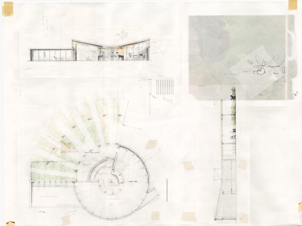 My architectural proposition fits into the community’s larger agricultural project by providing a gathering place that supports feasts and social gatherings, while enabling its inhabitants to become attuned to the unique character of the land they are on.